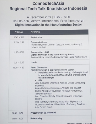 Selain adanya acara Business Matching dan Para Supplier Bisnis disini kamu juga bisa mengikuti Seminar yang diadakan oleh Manufacturing Indonesia 2019 selama 3 hari . Buruan cek Jadwalnya dibawah ini :