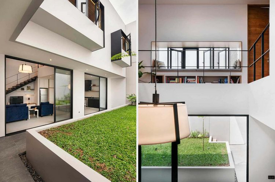 Selain itu, pencahayaan dan penghawaan alami lebih optimal. Ditambah lagi dominasi warna putih yang memantulkan cahaya ke seluruh ruang.