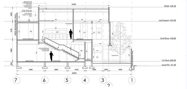 Tata letak interior diatur dan menyatu dengan eksterior lewat keikutsertaan jendela dan skylight untuk menciptakan kenyamanan interior yang bermandikan cahaya alami. Ruangan dalam terasa lega dan terang, terutama area ruang keluarga dan ruang makan.