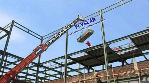 Aplikasi Flyslab sangat praktis dan terbukti sangat fleksibel. Flyslab juga matching diaplikasikan pada bangunan gedung bertingkat dengan konstruksi rangka baja.