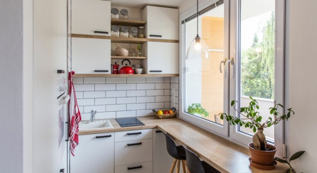 Selanjutnya, Anda bisa memasang meja multifungsi yang cocok untuk menyiapkan bahan makanan, menyimpan barang, sekaligus untuk menyajikan makanan. Dengan cara seperti ini, Anda akan mendapat meja untuk menyiapkan makanan, menyimpan barang, sekaligus menghemat ruangan di dalam rumah.