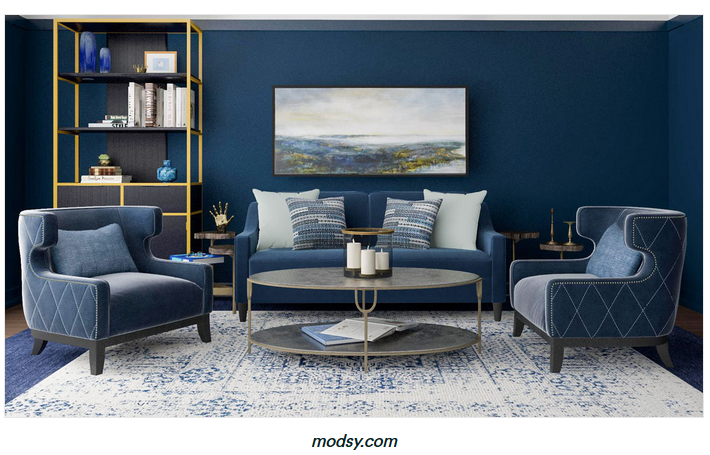 Warna monokrom biru pada ruangan ini tidak memiliki perbedaan turunan yang begitu kentara. Oleh karena itu, Teman 88bangunan membutuhkan sedikit sentuhan warna putih sebagai pelengkapnya.