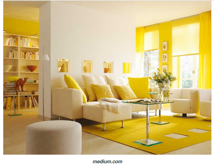 Jika ingin lebih estetik, coba susun majalah atau novel pada rak buku yang memiliki sampul berwarna monokrom kuning. Warna turunan yang cocok untuk interior monokrom kuning adalah oranye dan beige.