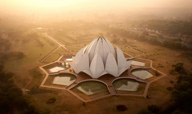 Bahá'í House of Worship, tempat pemujaan berbentuk teratai simetris. Salah satu ikon kota New Delhi dan bangunan yang paling banyak dikunjungi di dunia pada tahun 2001, menurut CNN (sumber : travelguideindia.wordpress.com)