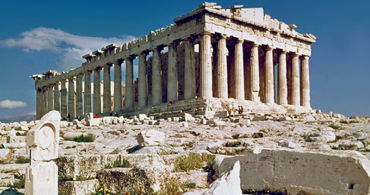 Kuil Parthenon di Bukit Acropolis, Yunani sebagai arsitektur ikonik berlanggam dorik dan klasik sebagai perlambang religi, budaya, dan politik karya Phidias, Ictinus, dan Callicrates yang dibangun 447 SM (sumber : rt.com)