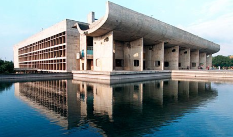 The Chandigarh Legislative Assembly di Chandigarh, India karya Le Corbusier menampilkan tiga bangunan utama terbuat dari beton masif melengkung setebal 15 cm (sumber : theguardian.com)