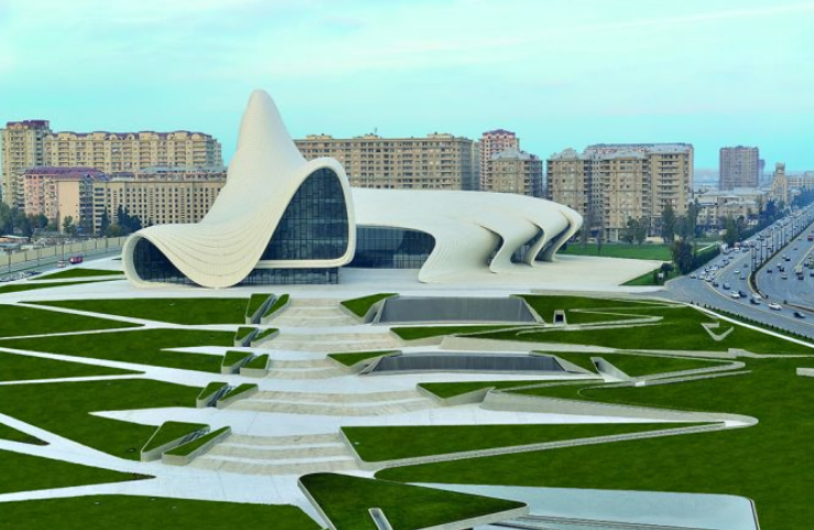 Heydar Aliyev Center di Baku, Azerbaijan, karya Zaha Hadid. Karya
