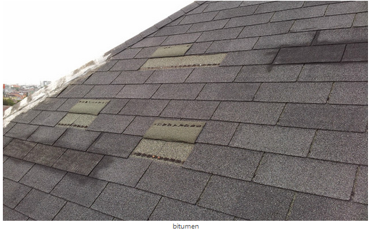 Bitumen di Indonesia disebut juga genteng aspal. Bahan penyusun atap ini terdiri atas lapisan aspal, resin, serat organik, dan bubuk kertas. Bentuk atap aspal berupa lembaran yang mempunyai ketebalan sekitar 0,5-1 cm. Pemasangan atap ini bisa dilakukan dengan lem, atau sekrup ke reng.
