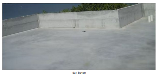 Atap beton juga dikenal dengan dak beton yang dibuat dari campuran semen, pasir dan air. Pengerjaan dak beton cukup rumit namun sanggup bertahan seumur hidup apabila menggunakan campuran yang tepat dan perawatan yang benar.