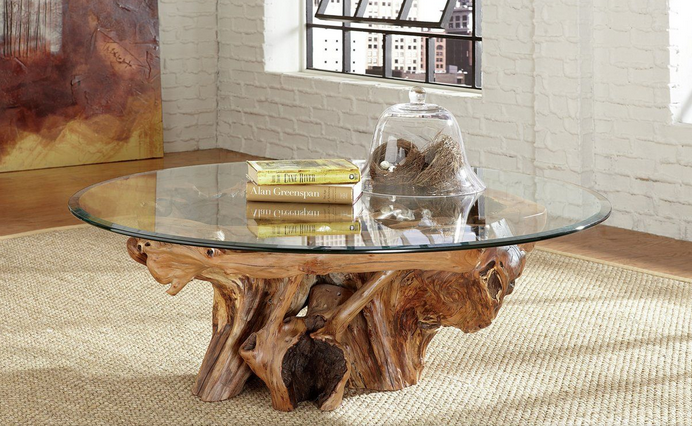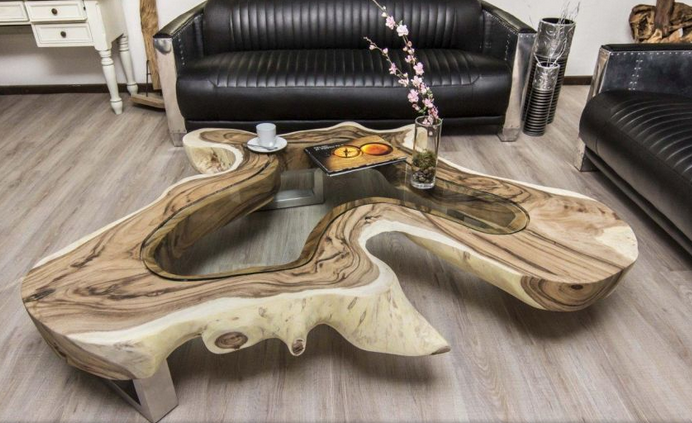 Model meja kayu ini dibuat secara custom, di mana material kaca tersebut mengikuti bentuk lekukan kayu alaminya. Selain itu, bagian kakinya terbuat dari bahan stainless yang membuat meja kayu ini tampak unik, modern, dan mewah secara bersamaan.