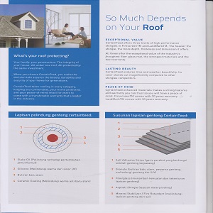 详情 Produk genteng yang sudah terpercaya di Amerika sejak tahun 1904, CertainTeed. Sebuah merek global yang mendunia telah hadir di Indonesia sejak tahun 1990. Untuk memberikan pengalaman tinggal di hunian yang nyaman dan aman untuk keluarga Indonesia.