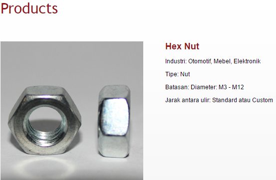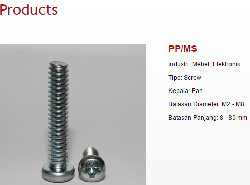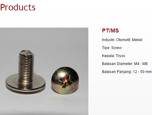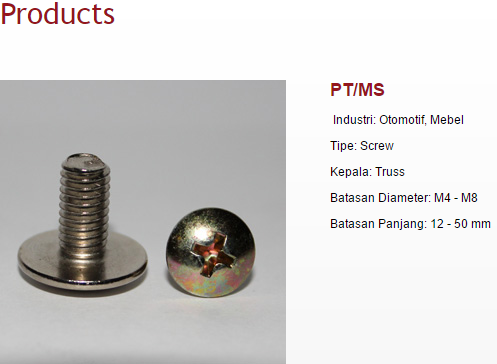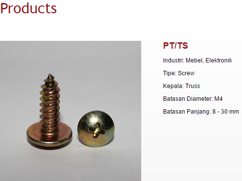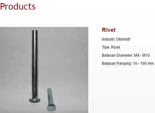 Melalui tekad yang kuat bermodalkan keberanian dan kejujuran, apa yang dimulai sebagai ¡°bengkel¡± baut belasan tahun yang lalu telah tumbuh menjadi pabrik fastener tepercaya, yang menerapkan sistem manajemen mutu berstandar international ISO 9001:2008 (Certified by SGS, Certificate ID08/118).