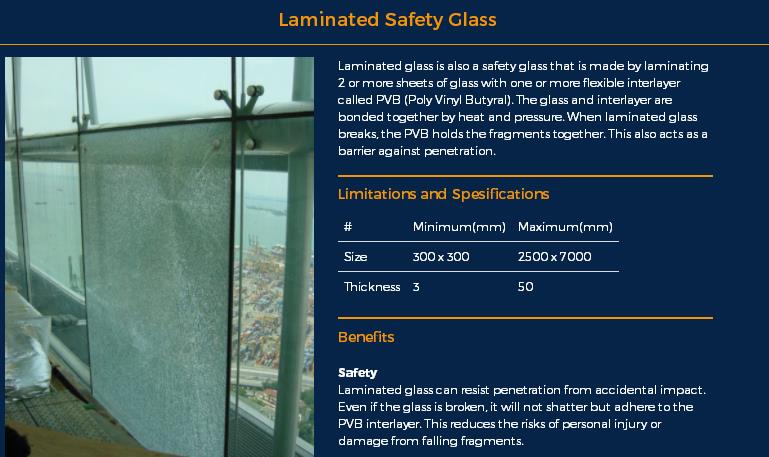 Tempered Safety Glass :Limitations and Spesification 300~2850 x 8600mm,Thickness3~ 19mm;