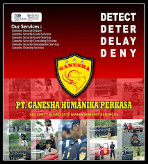 PT. GANESHA HUMANIKA PERKASA - Security Management System didirikan pada 1 Agustus 2010 dengan legalitas yang lengkap dengan tujuan untuk memberikan solusi terhadap perberdayaan Sumber Daya Manusia khususnya dibidang Ketenaga Kerjaaan di Indonesia serta kebutuhan sektor Industri tentang Jasa Pengamanan yang Profesional, Efektif dan Efisien.