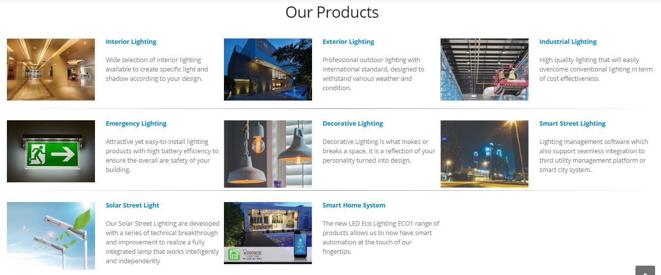 Interior Lighting; Exterior Lighting; Industrial Lighting; Emergency Lighting; Smart Street Lighting; Solar Street Light; Smart Home System;