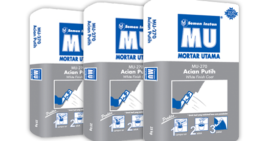 Bila MU-200 Skim Wall memiliki hasil akhir acian berwarna abu-abu, maka spesifikasi Mortar Utama MU-270 Acian Putih adalah untuk menghasilkan acian berwarna putih dan halus. Bedanya lagi, acian putih akan menghasilkan warna cat dinding bangunan yang lebih cantik serta daya lekat yang lebih kuat, Tidak heran bila produk ini dijual lebih mahal dari varian abu-abu, yaitu sekitar Rp150.00/pcs atau Rp135.000/pcs untuk grosir.