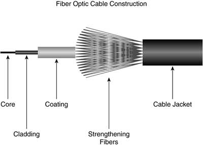 1. Core atau inti, merupakan bagian yang dapat mentransmisikan sinyal cahaya yang dibuat dari kaca atau plastik. Semakin besar ukuran core atau inti, maka cahaya yang dapat ditransmisikan sepanjang kabel fiber optik menjadi semakin banyak
