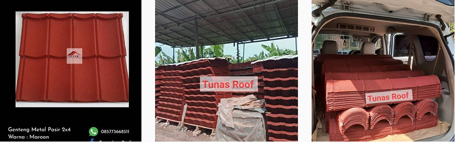 CV Tunas Jaya Roof adalah perusahaan yang bergerak dibidang manufaktur genteng metal pasir. Perusahaan ini berdiri sejak tahun 2011. Melihat dari kemajuan pembangunan yang pesat dan permasalahan dalam masyarakat tentang pembangunan dengan proses pemasangan atap dari tanah liat yang lama dan rumit. Kami memiliki ide untuk membuat sesuatu yang sederhana dan lebih mudah diaplikasikan. Dengan berbahan dasar galvalum yang sudah dicetak menyerupai genteng lembaran memiliki lima daun sekaligus dalam satu lembar, hal ini tentunya akan mempercepat proses pembangunan terutama dalam pemasangan atap. Produk ini juga dilapisi pasir sebagai peredam suara dan dilapisi pewarna agar lebih menarik.