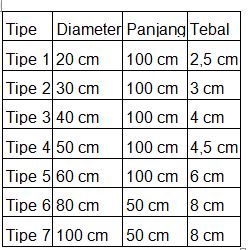 1. Ukuran Buis Beton