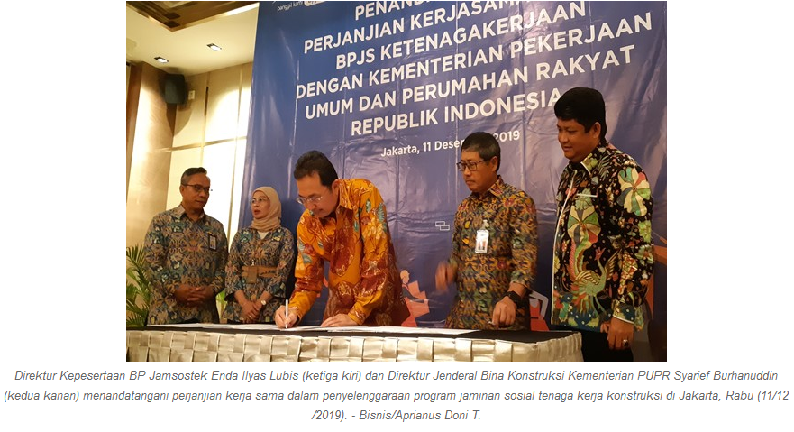 "Melalui kerja sama ini kami ingin memastikan bahwa mereka [pekerja konstruksi] memiliki perlindungan atau jaminan sosial ketenagakerjaan agar aman dan nyaman saat bekerja sehingga produktivitas meningkat dan kualitasnya selalu terjaga,¡± ujarnya pada saat penandatanganan kerja sama tersebut, Rabu (10/12/2019).