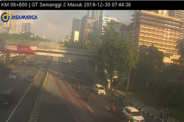 Suasana contra flow bisa Anda simak dari pantauan CCTV Jasa Marga di Gerbang TOL Semanggi DI SINI.