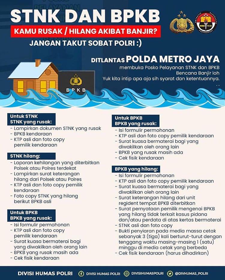 Jangan Takut Teman 88bangunan.com , Ditlantas Polda Metro Jaya membuka Posko Pelayanan STNK dan BPKB Bencana Banjir loh