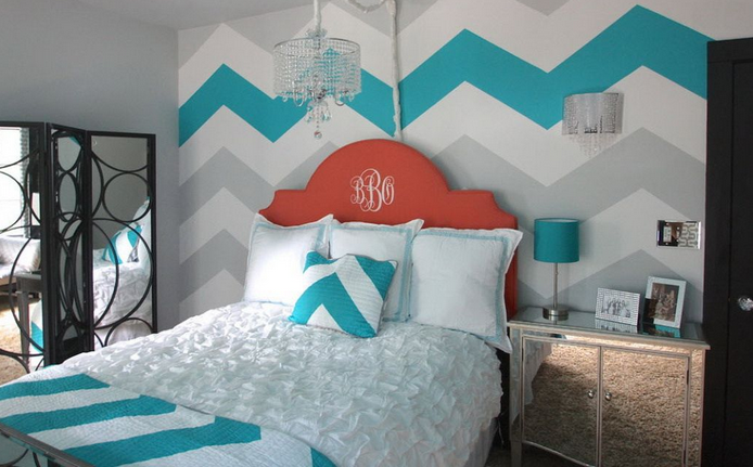 - Cat Dinding Biru Tosca dengan Pola Zigzag