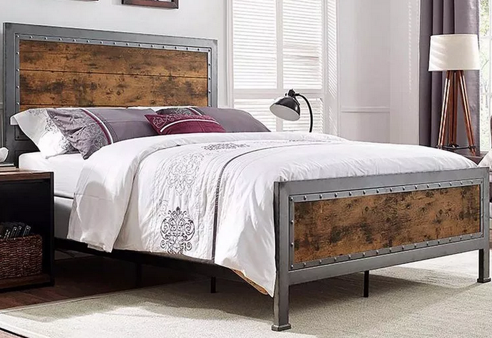 Tempat tidur kayu yang dipadukan dengan material besi sebagai bingkainya juga akan terlihat elegan, bahkan lebih kokoh lagi. Material kayu danbesi yang digunakan dibiarkan hadir dalam warna aslinya. Tempat tidur kayu yang dipadukan dengan material besi ini sangat cocok untukkamar tidur bergaya rustic.