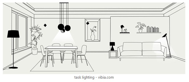 Meskipun memberikan penerangan umum, cahaya ambient light tidak ideal untuk pekerjaan tugas khusus atau pameran elemen tertentu dalam ruang, yang merupakan peran dari dua jenis pencahayaan berikutnya.