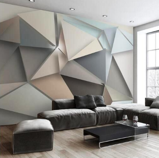 Wallpaper bidang geometris 3D akan memberikan kesan kedalaman dan ketinggian pada dinding. Sebagai contoh, jika kita mengambil kubus bertumpuk atau semacamnya, mereka memberikan rasa vertikalitas, membuat jenis wallpaper ini ideal untuk ruangan yang memiliki dinding pendek.
