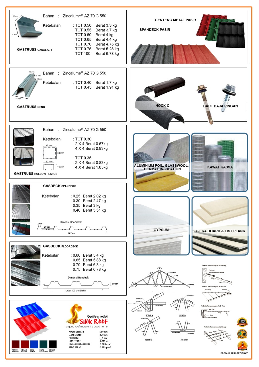 PT. GLOBAL ARWANA STEEL melalui merk dagang GASmart memproduksi dan memasarkan segala kebutuhan material rangka atap baja ringan seperti :