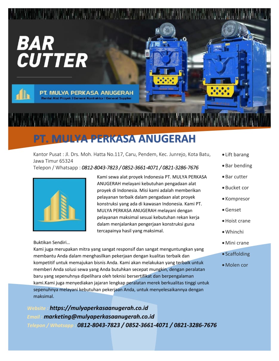 Bar Bender, Bar Bending, Bar Cutter, Bar Cutting, Lift Barang, Lift Material
